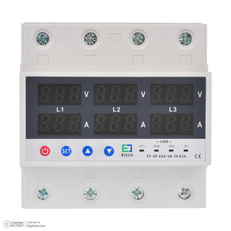 محافظ ولتاژ و جریان سه فاز 63 آمپر اتکو مدل ET-3P-63A-VA